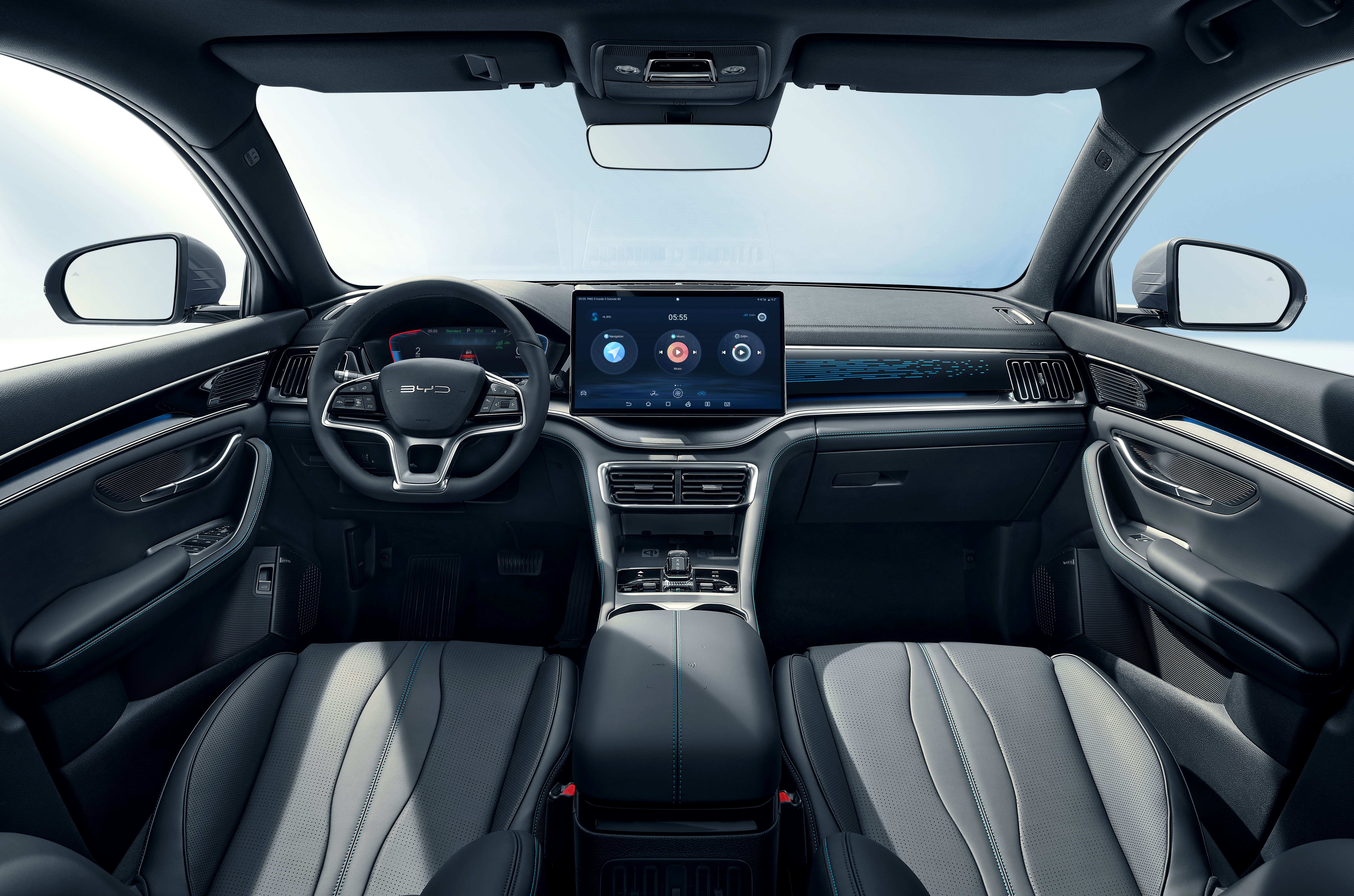 Innvendig i BYD Seal U møter du førsteklasses kvalitet, robuste materialer og et elegant design som er tilpasset familiens behov. Det stilige, sorte interiøret skaper en moderne og funksjonell atmosfære, der hver detalj er gjennomtenkt for optimal brukervennlighet og komfort.