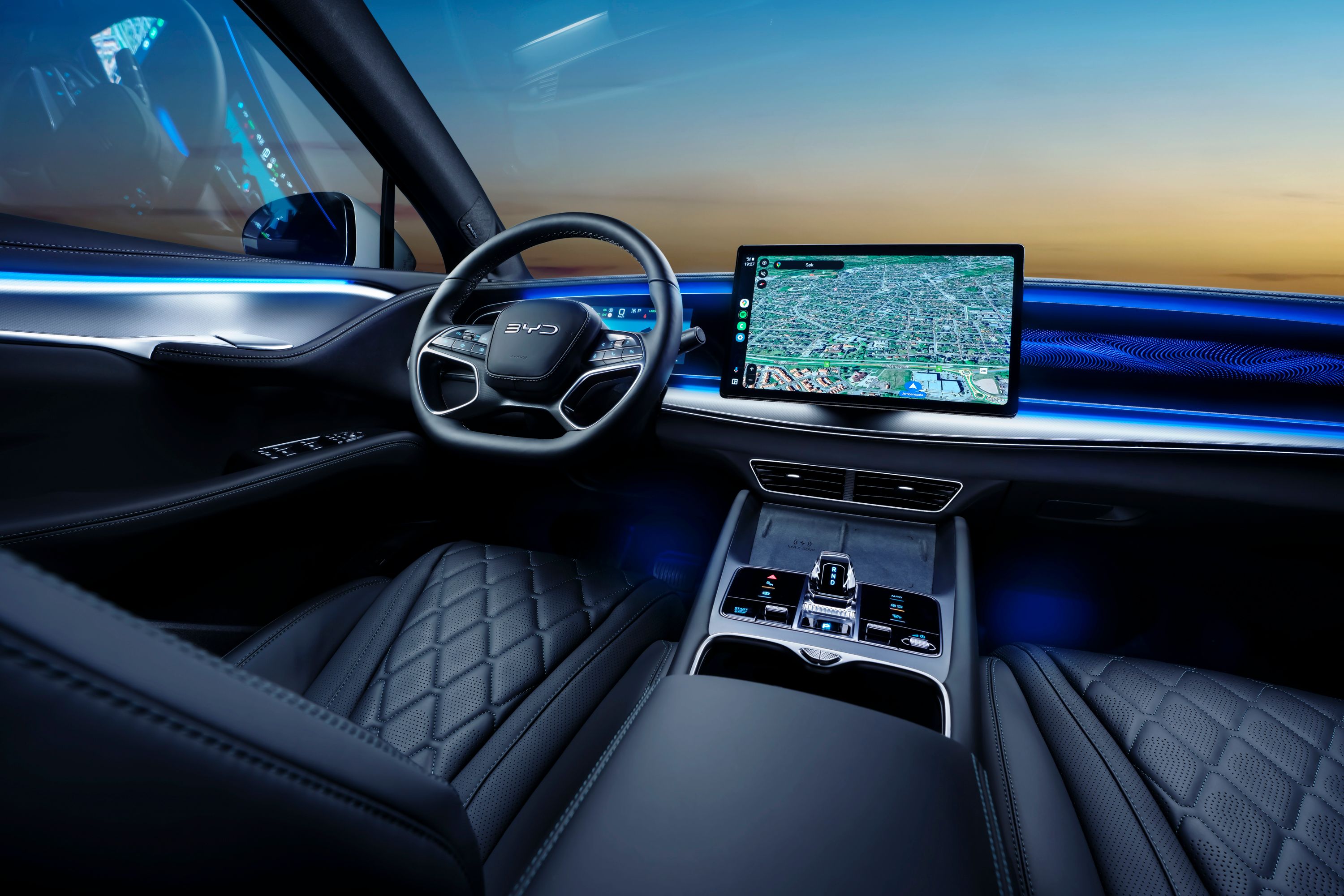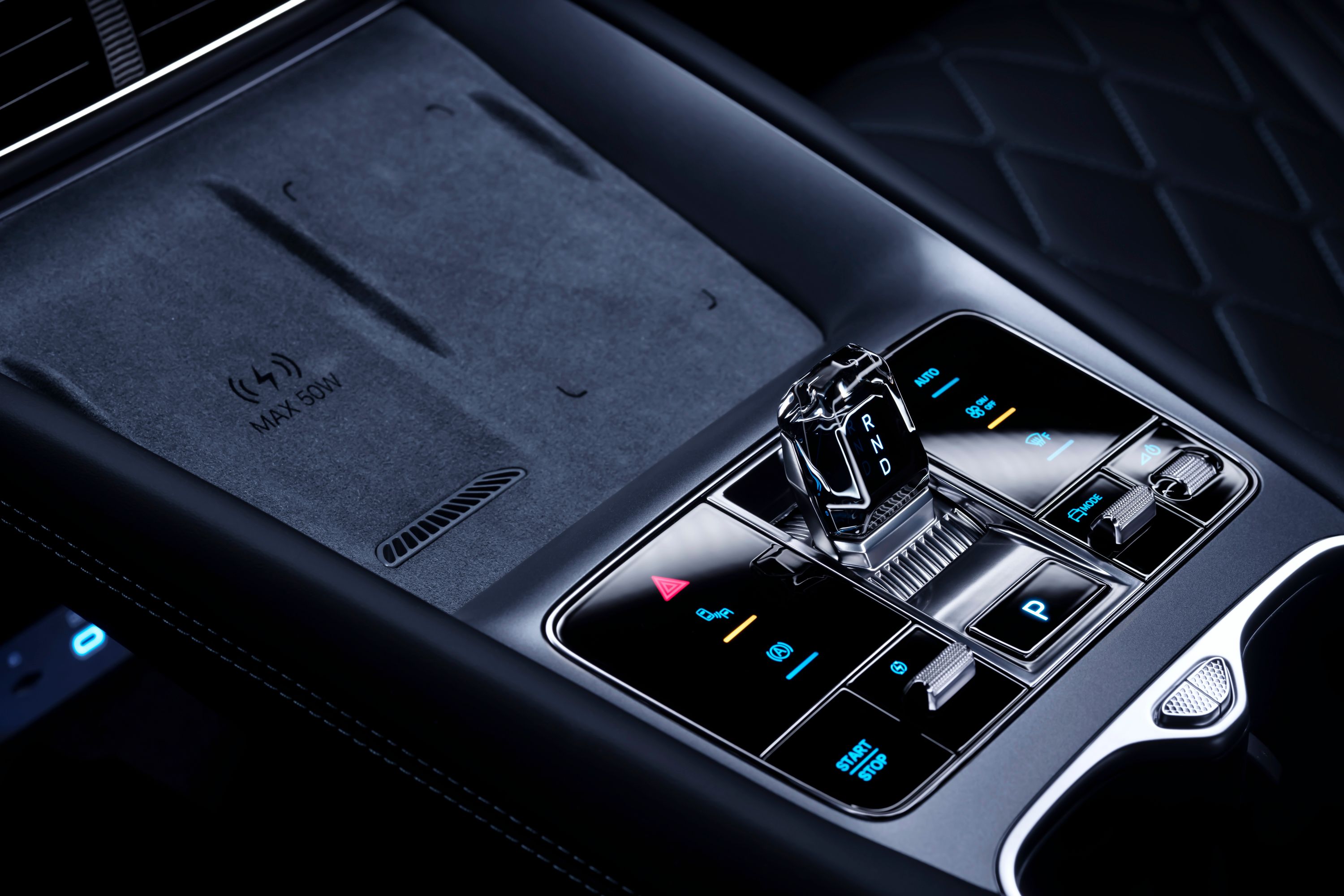I midtkonsollen finner du en trådløs ladeplate som lader mobilen din med en effekt på opptil 50 W, slik at du alltid kan holde deg tilkoblet uten kabler.