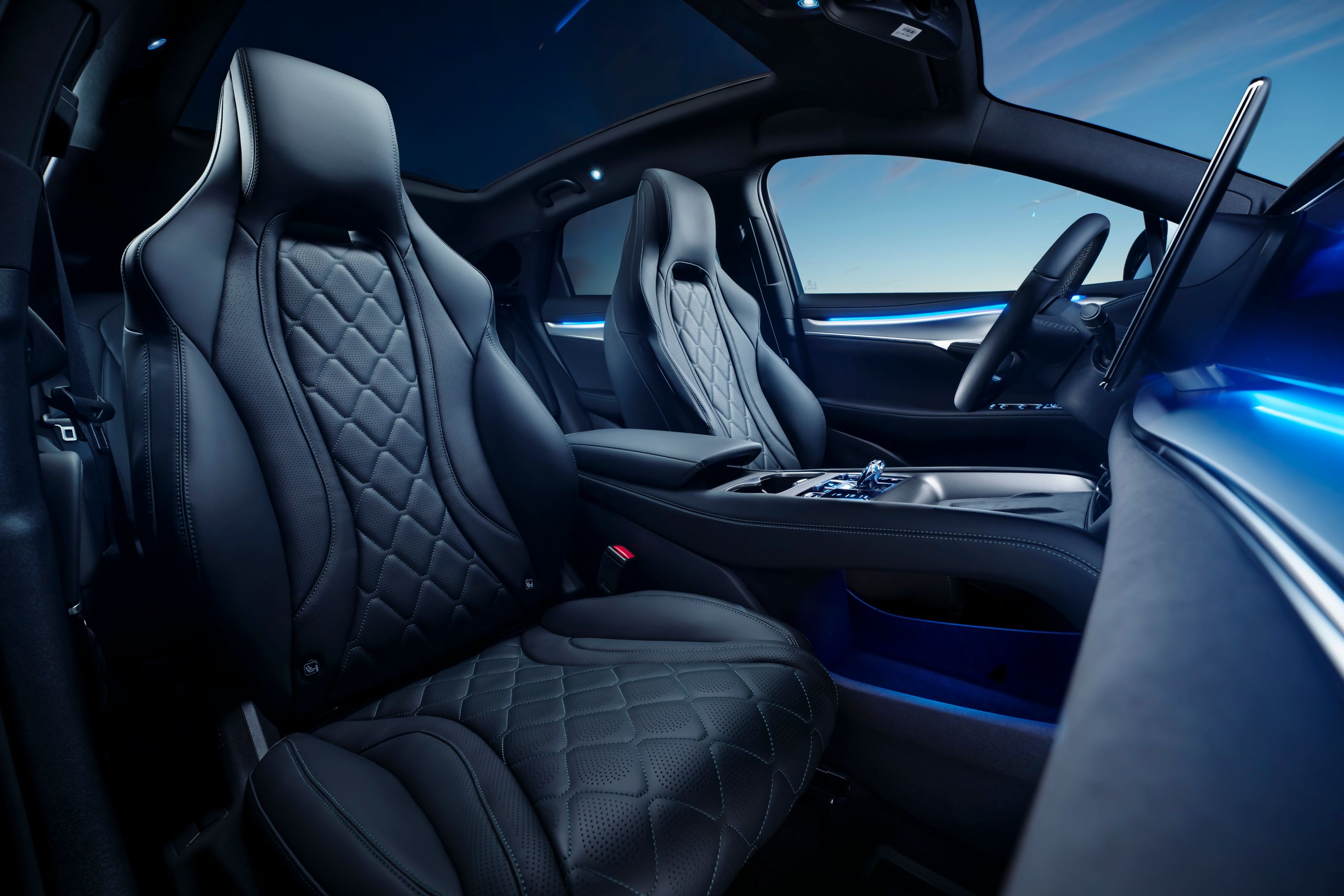 Sealion 7 kommer med komfortable sportsseter i Nappa-skinn. Forsetene har 8-veis justering, og førersetet har også ekstra justerbar forlenger til lårene.