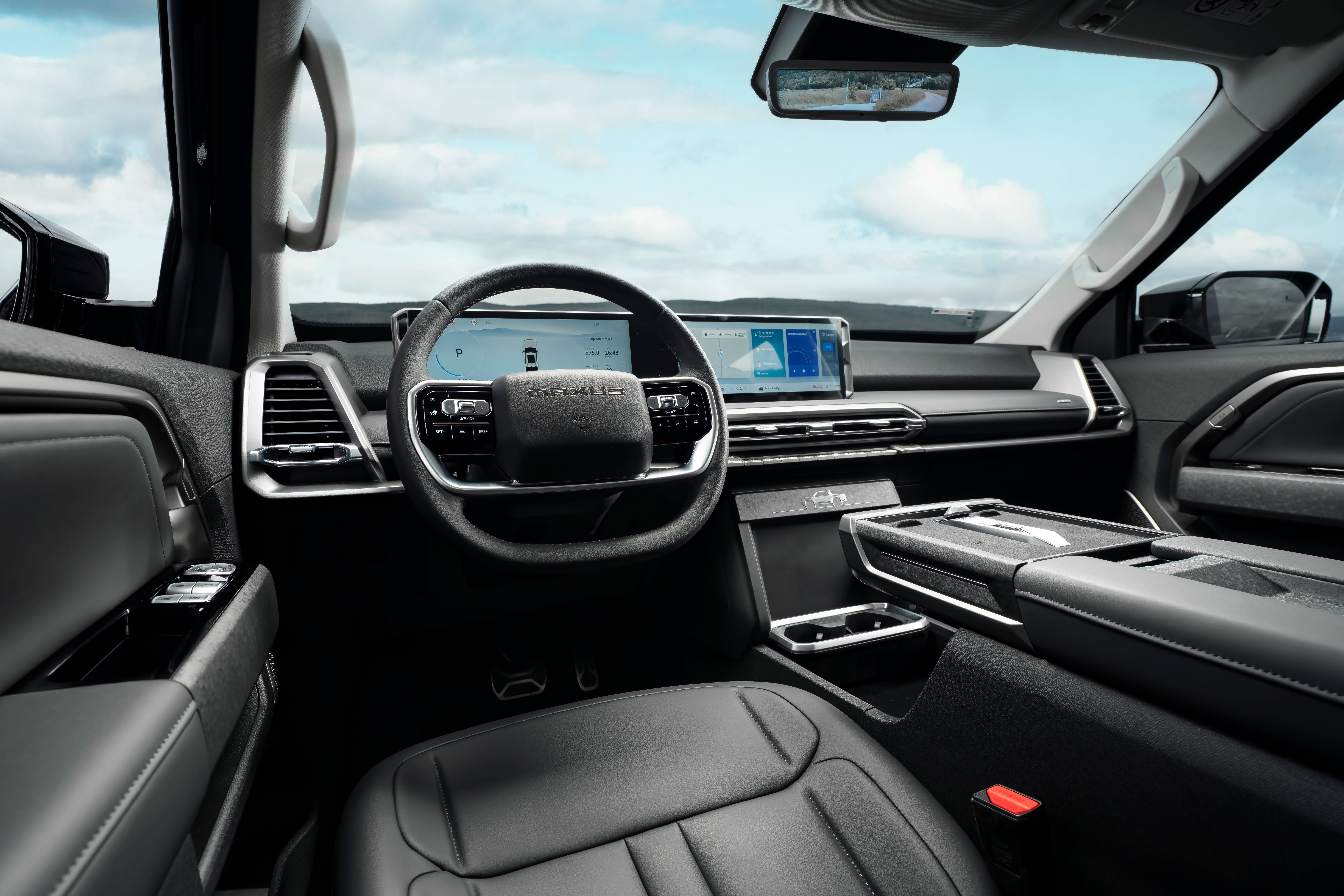Maxus eTerron 9s multifunksjonsratt gir føreren rask tilgang til viktige funksjoner som lyd, telefoni, Adaptive cruise control og kjøremodus, uten å slippe rattet. Dette gir bedre komfort og sikkerhet ved at du kan styre bilens systemer samtidig som du holder fokus på veien.