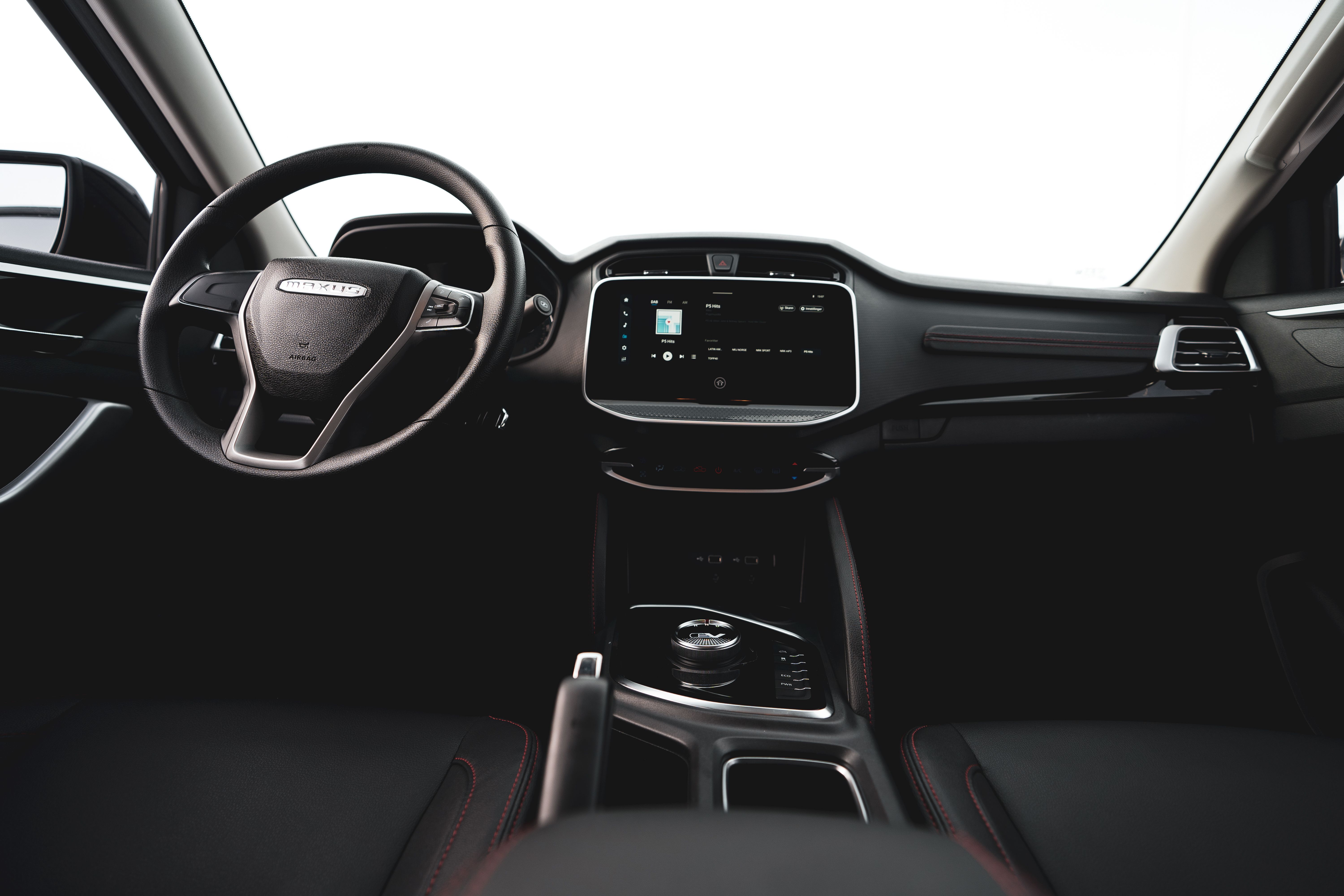 Maxus T90 EV tilbyr et moderne og romslig interiør som er designet for komfort og funksjonalitet. Med fem seter, god plass til både fører og passasjerer, høykvalitets materialer og smarte løsninger, ligger alt til rette for en behagelig kjøretur.