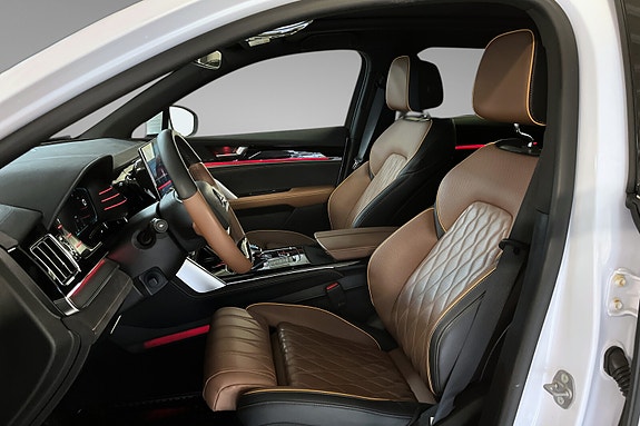 Som en romslig 7-seter byr Tang på eksepsjonell plass for hele familien. Interiøret er utstyrt med helskinnsseter med både elektrisk regulering, oppvarming og ventilasjon, samt et panoramaglasstak som skaper en luftig og lys atmosfære. De nedfellbare og delte baksetene gir deg fleksible lasteløsninger når du trenger ekstra bagasjeplass.